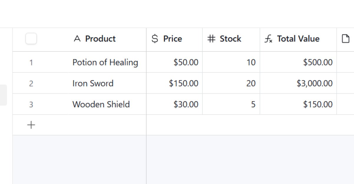 The real test, however, was changing the data. I updated the stock of the Potion from 10 to 20 and low-and-behold, the "Total Value" updated to $1000. Magic :)